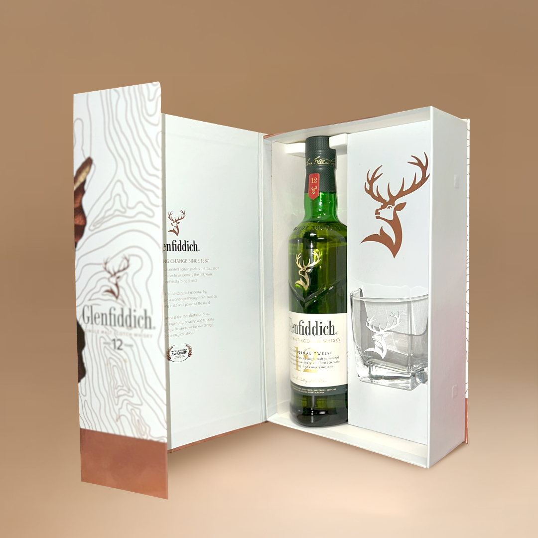 This special edition of the world-renowned Glenfiddich 12 Year Old comes beautifully presented in a branded Glenfiddich gift box, accompanied by a premium glass engraved with the iconic Glenfiddich stag. A true celebration of craftsmanship, this set makes the perfect gift for whisky lovers.